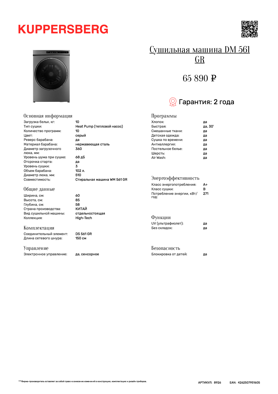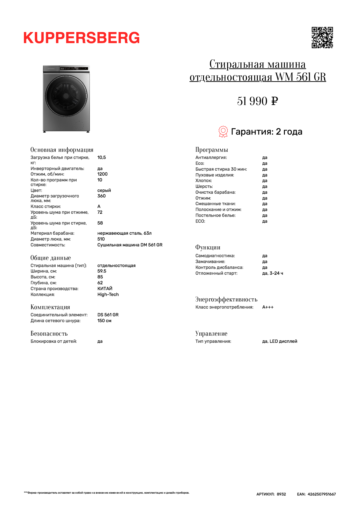 Представляем Вам новую стиральную машину Kuppersberg WM-561-GR и сушильную машину Kuppersberg DM-561-GR.