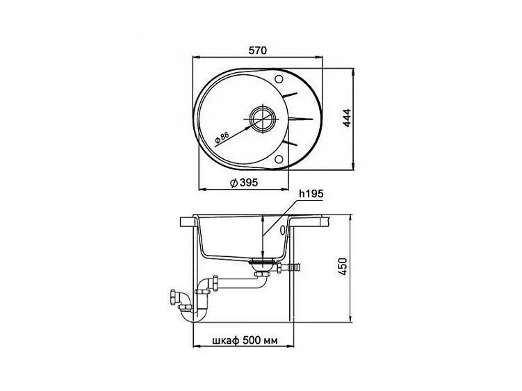 | Размер мойки (ШхД) | 444x570 мм |