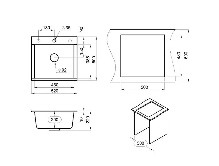 | Габариты мойки (ШхГхВ) | 520x500х200 мм |