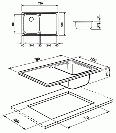 | Размеры выреза: | 770х480 мм |