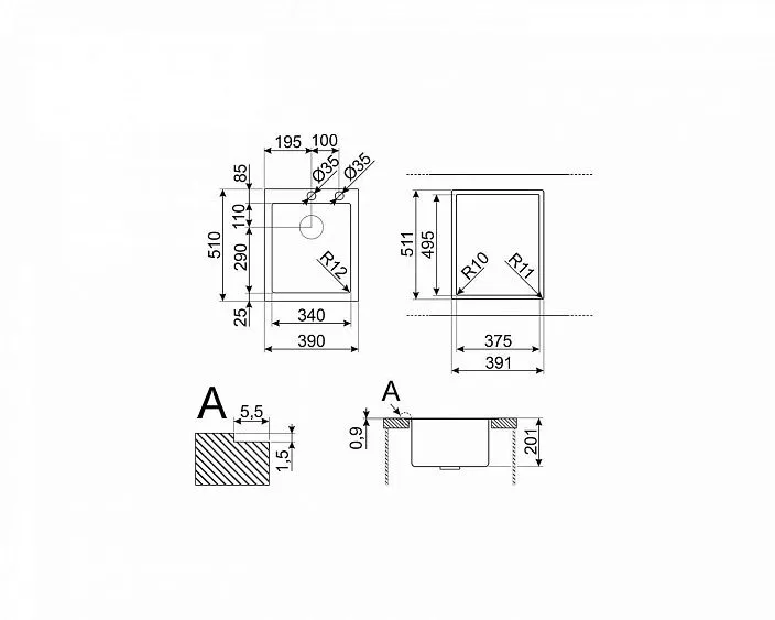 | Диаметр отверстия под смеситель | 35 мм |