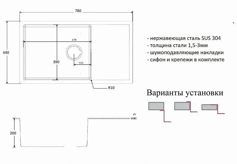 | Тип установки | сверху на столешницу, снизу под столешницу, вровень со столешницей |