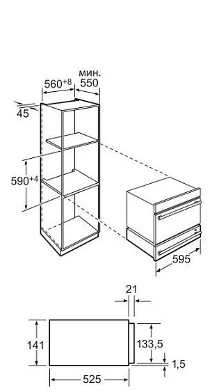 | Размеры ниши для встраивания (В х Ш х Г) | 14,1 х 56,0 х 55,0 см |
