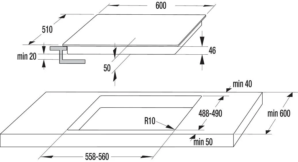 | Размер ниши для встраивания (ВхШхГ) | 6.6 x 55.8-56 x 49 см |