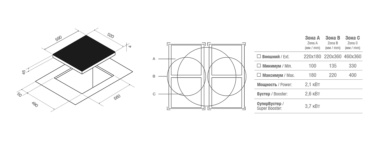 | Мощность зоны А в режиме Бустер | 2,6 кВт |