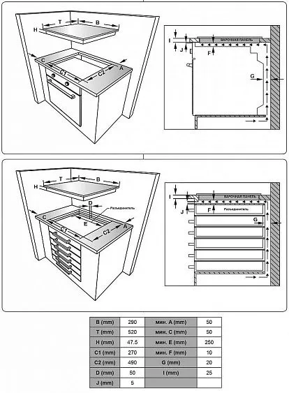 | Габариты встраивания (ШxГ) | 27х49 см |