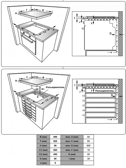 | Габариты встраивания (ШxГ) | 56х49 см |