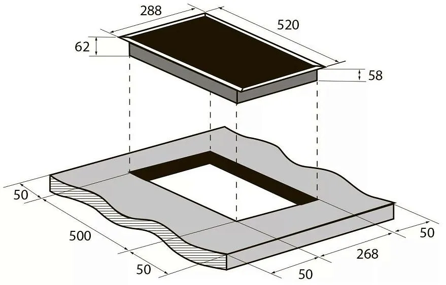 | Габариты ниши (ВхШxГ) | 30х268x500 мм |